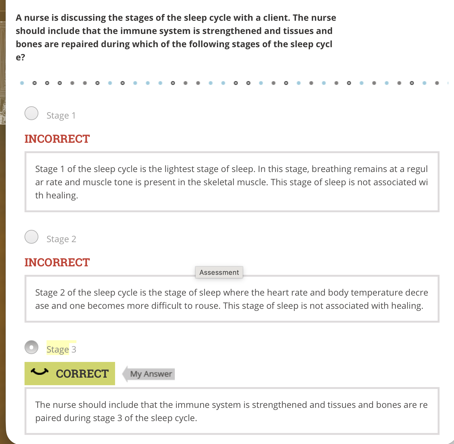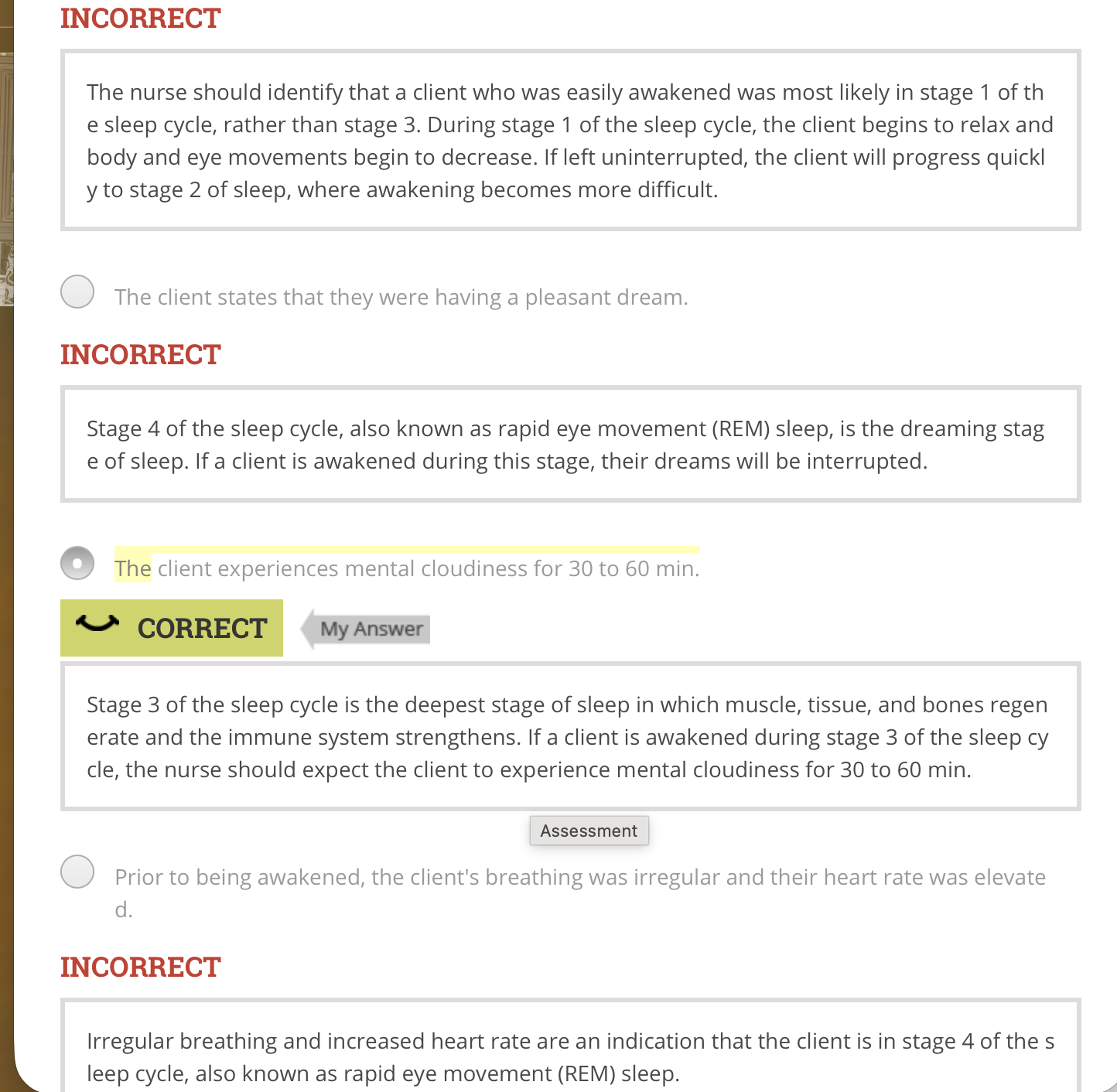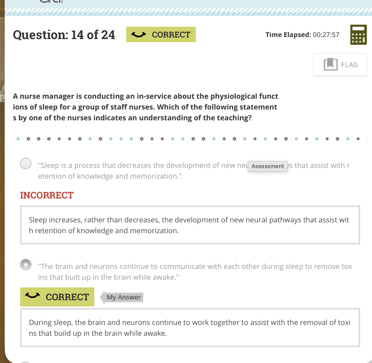 "The brain and neurons continue to communicate with each other during sleep to remove tox ins that built up in the brain while awak Assessment