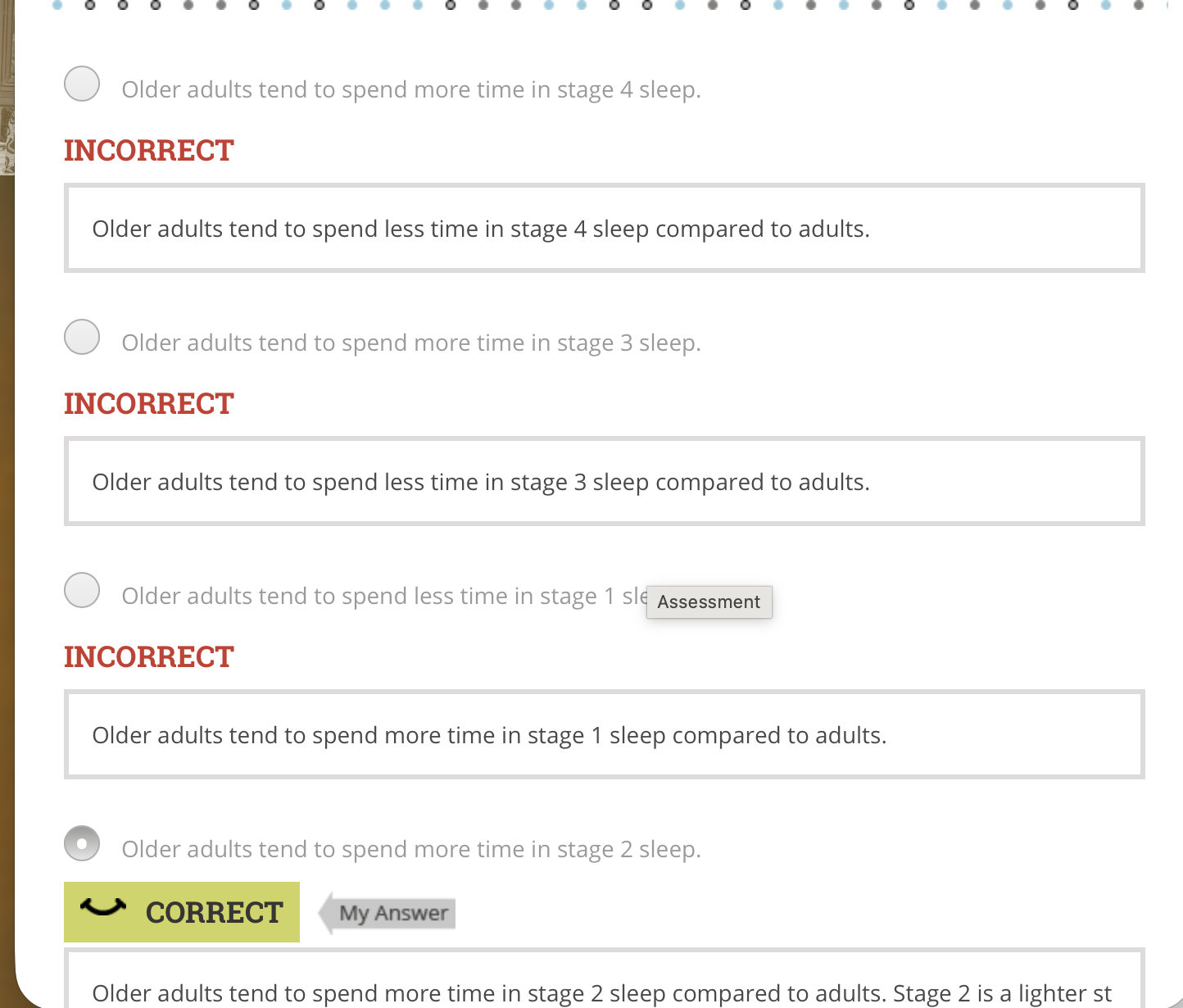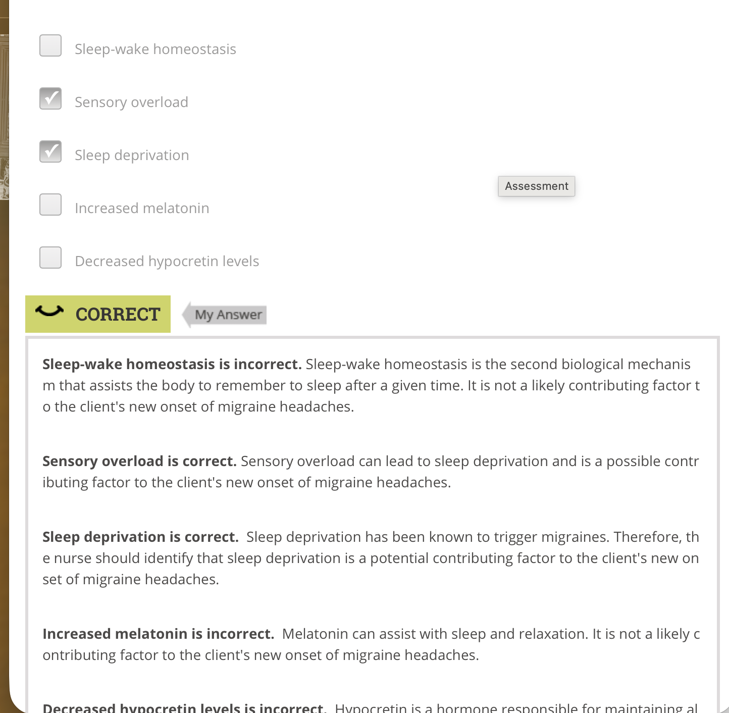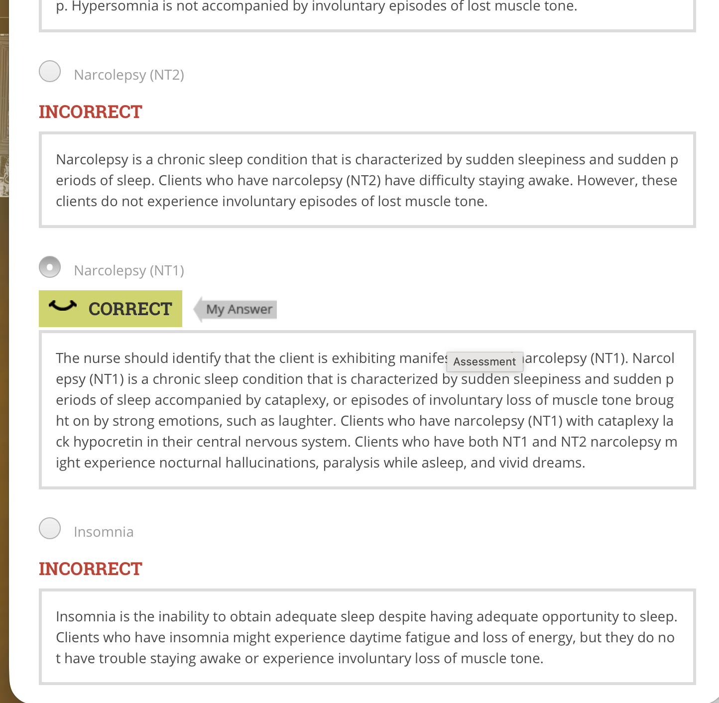 "The brain and neurons continue to communicate with each other during sleep to remove tox ins that built up in the brain while awak Assessment