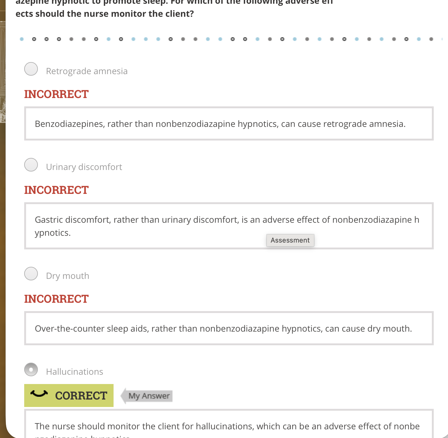 A nurse is caring for a client who has a new prescription for a nonbenzodi azepine hypnotic to promote sleep. For which of the following adverse eff ects should the nurse monitor the client?
