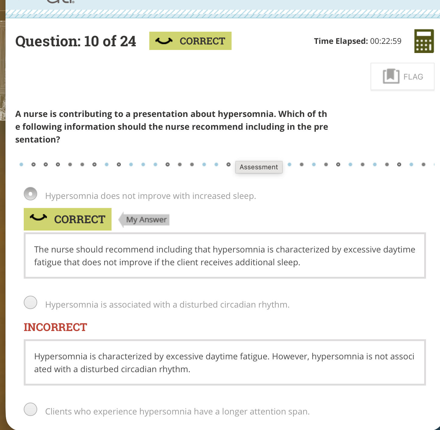 A nurse is contributing to a presentation about hypersomnia. Which of th e following information should the nurse recommend including in the pre sentation?