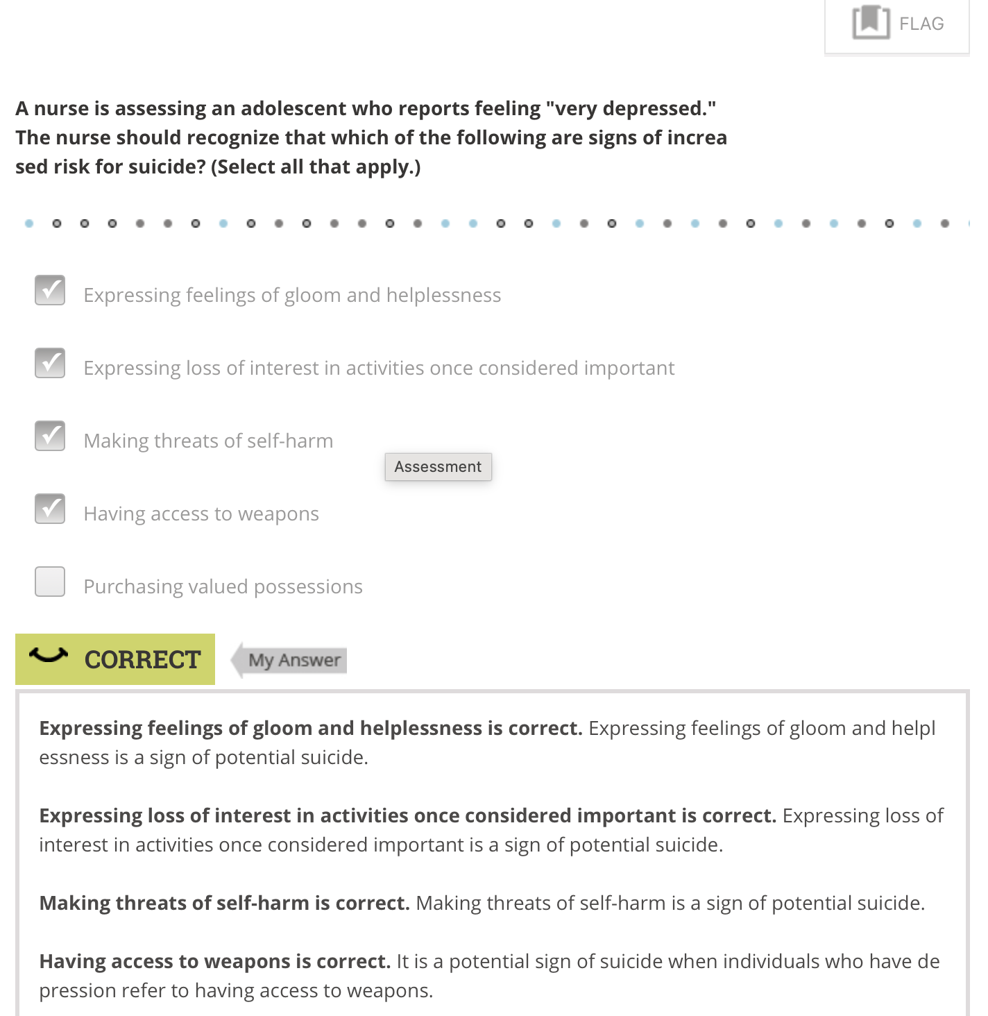 A nurse is assessing an adolescent who reports feeling "very depressed." The nurse should recognize that which of the following are signs of increa sed risk for suicide? (Select all that apply.)