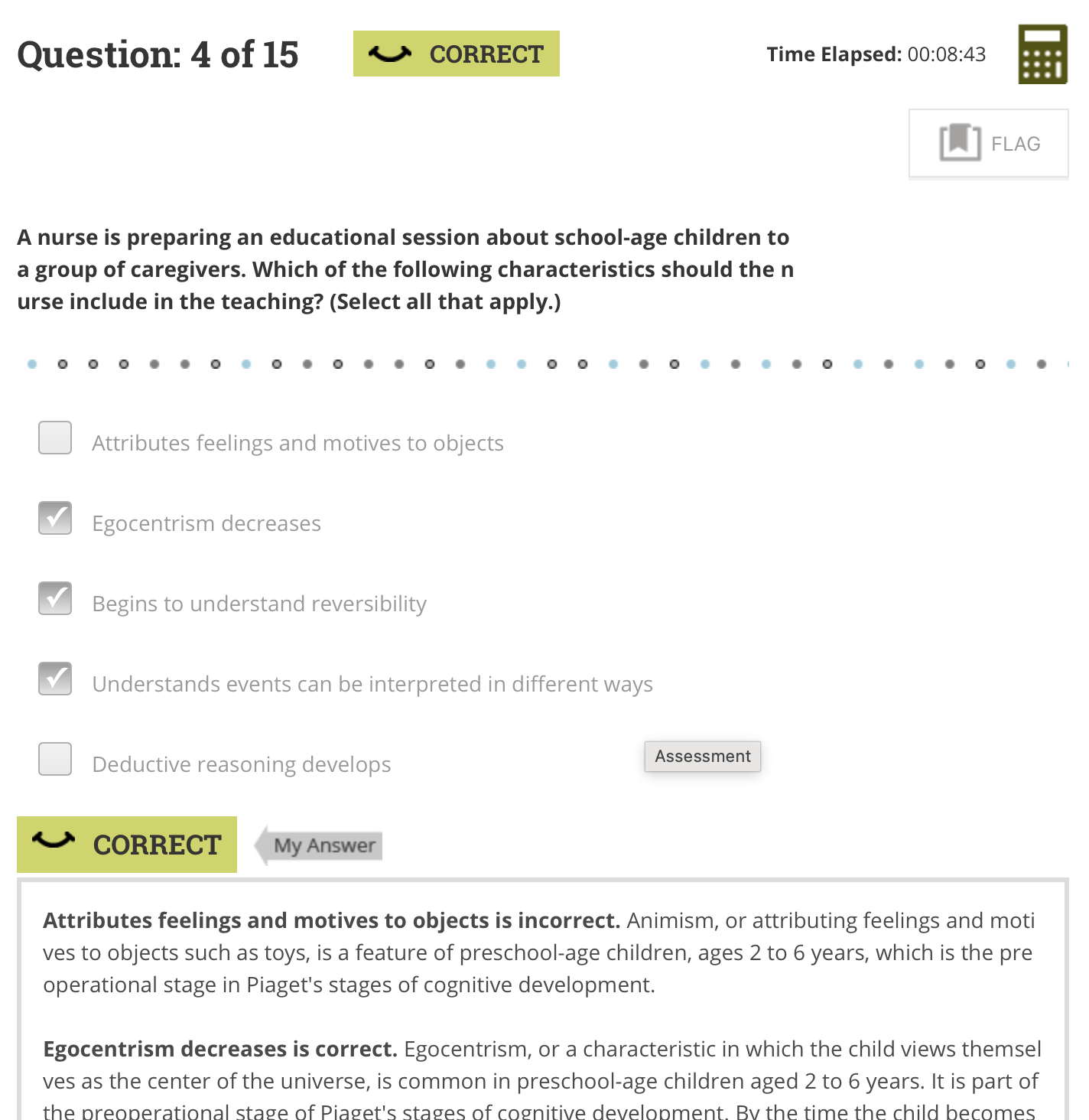 A nurse is providing an educational session on cognitive development at a community event. Which of the following statements by the nurse are c onsistent with Piaget's theory of cognitive development?