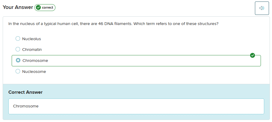 In the nucleus of a typical human cell, there are 46 DNA filaments. Which term refers to one of these structures?