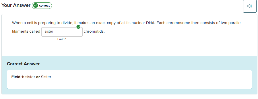 Fill in the blank — When a cell is preparing to divide, it makes an exact copy of all its nuclear DNA. Each chromosome then consists of two parallel filaments called ______ chromatids.