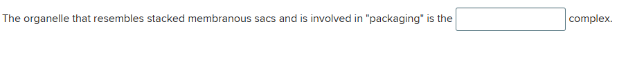 Read MoreThe organelle that resembles stacked membranous sacs and is involved in “packaging” is the ______ complex.